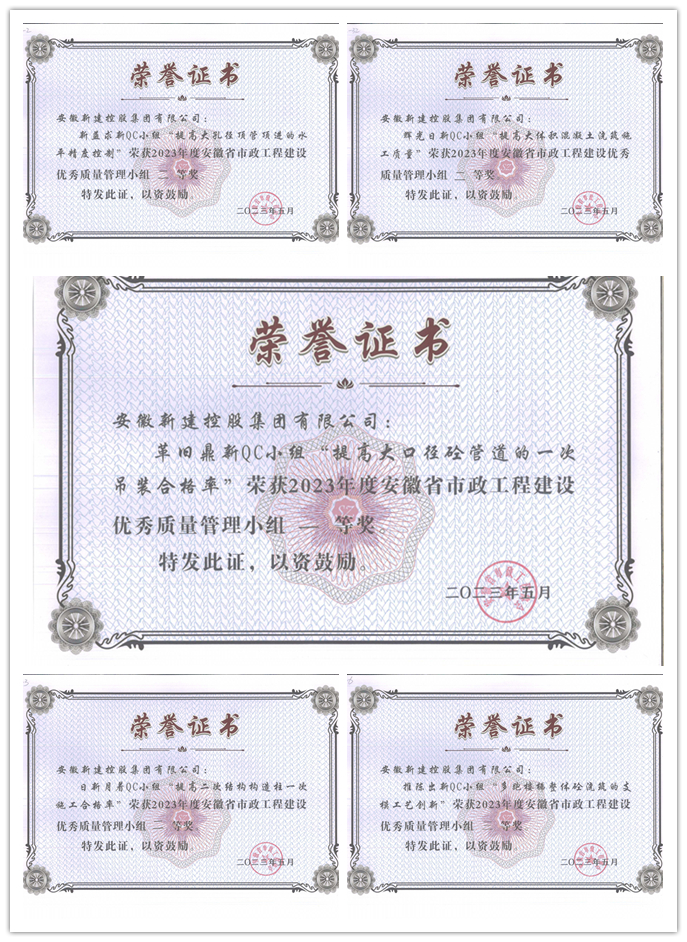 交流會上,專家評委從選題、原因分析、對策與實施、效果、發布等方面對來自全省共計256個QC成果進行了評審,并對獲得2023年安徽省市政工程建設優秀QC小組活動成果進行表彰。集團申報的5項QC成果“提高大口徑砼管道的一次吊裝合格率”、“提高大孔徑頂管頂進的水平精度控制”、“提高大體積混凝土澆筑施工質量”、“提高二次結構構造柱一次施工合格率”、“多跑樓梯整體砼澆筑的支模工藝創新”,分別獲得一等獎1項、二等獎3項、三等獎1項成績,榮譽數量和質量均創新高。