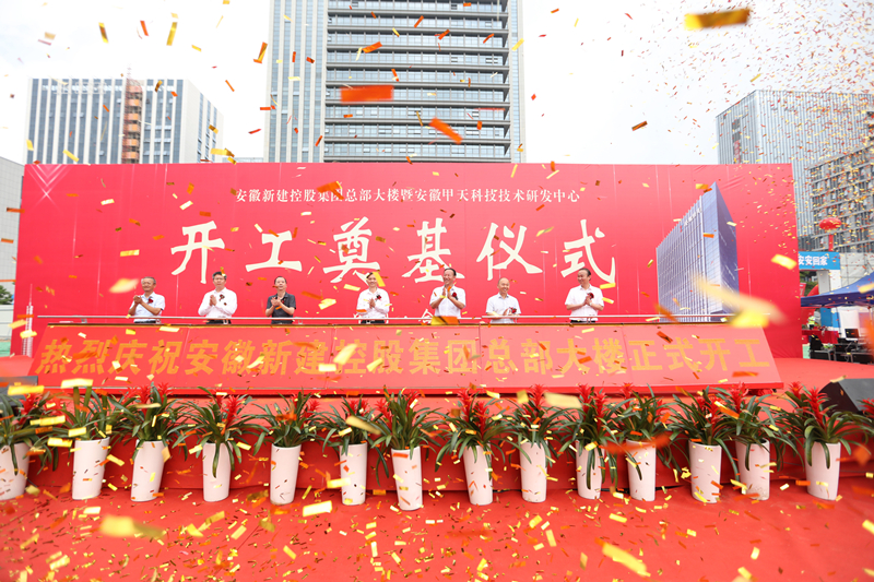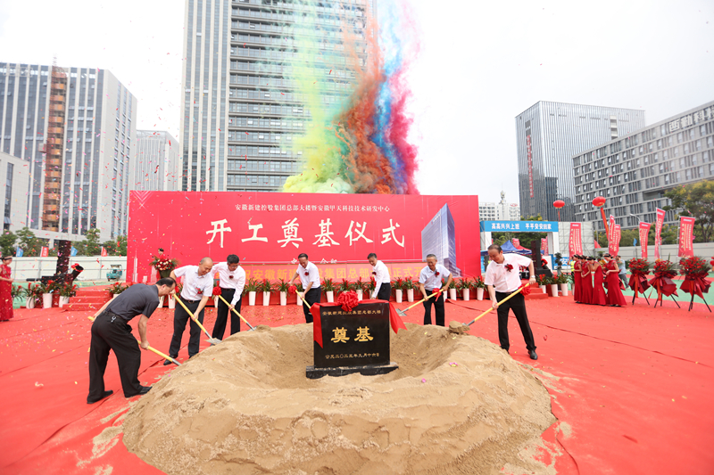 在隨后的開工奠基儀式上,出席領導及嘉賓共同推桿啟幕,揮動奠基金鏟, 為“安徽新建控股集團總部大樓”開工奠基,共同見證和慶祝這一具有里程碑式意義的時刻。在全場雷鳴般的掌聲和震耳欲聾的禮炮聲中,集團公司總部大樓暨安徽甲天科技技術研發中心開工奠基儀式圓滿禮成。