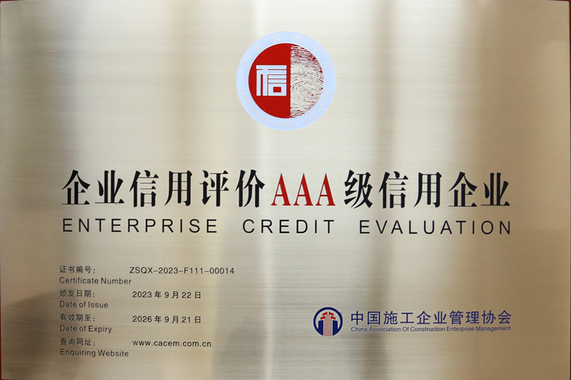 企業信用評價是社會信用制度的重要組成部分,是企業獲得政府扶持以及企業商務往來、招商、投資、信用擔保、融資的通行證。連續多年獲得工程建設誠信典型企業、企業信用評價AAA級信用企業榮譽,是安徽新建多年來誠信經營的具體體現,也是集團信譽、履約能力、文化建設、社會責任成績優異的生動展示。