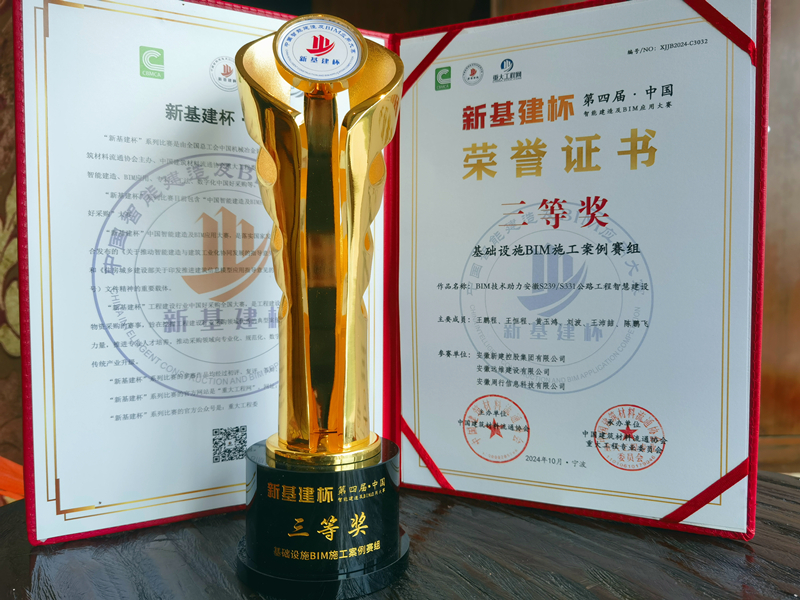 10月21日,由中國建筑材料流通協會主辦的第三屆中國重大工程數字生態大會暨第四屆“新基建杯”BIM應用大賽優秀成果交流會在寧波召開,集團公司申報的《BIM技術助力安徽S239/S331公路工程智慧建設》榮獲大賽基礎設施BIM施工案例組三等獎。