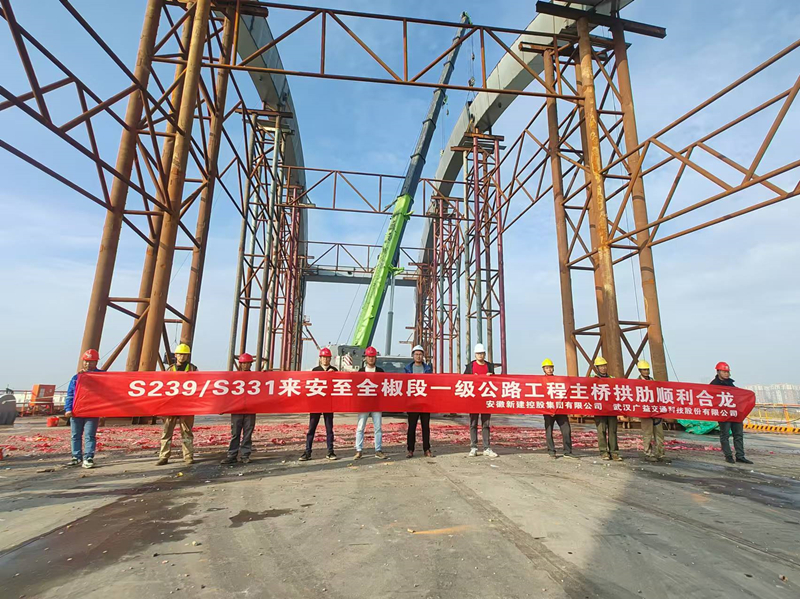 11月10日,隨著最后一節鋼管拱肋節段吊裝,嚴絲合縫安裝在橋墩上,集團公司承建的S239/S331來安至全椒段一級公路工程主橋拱肋順利合龍,為下一步大橋吊桿系桿施工打下堅實基礎。