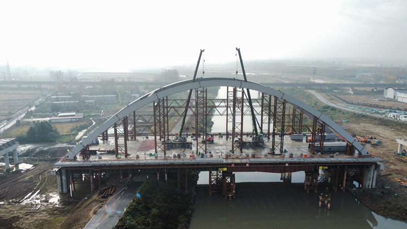 S239/S331來安至全椒段一級公路(全椒火車站至滁州大道段)工程路線起點為全椒縣火車站前萬福路與儒文路預留交口,路線自西向東,與規劃章陳路相交后,設橋跨襄河及防洪堤,終點與現狀滁州大道相交。該項目道路等級為一級公路兼城市主干道,標準段紅線寬度32米,路線總長約為2.445千米,均為新建。主橋采用單跨120米下承式鋼箱系桿拱橋結構,為梁拱組合體系橋梁,拱圈及縱梁均采用鋼箱結構系桿為剛性系桿,全寬42米,橋面系采用正交異性鋼橋面板結構形式。